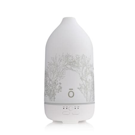 熱を使わない超音波振動によってオイルを噴霧し、香りを広範囲に届けて、お部屋をくつろぎの空間にしてくれます。照明カラーは、森林をイメージしたグリーン2種と暖色の2種を含む4色から選んで設定できます。